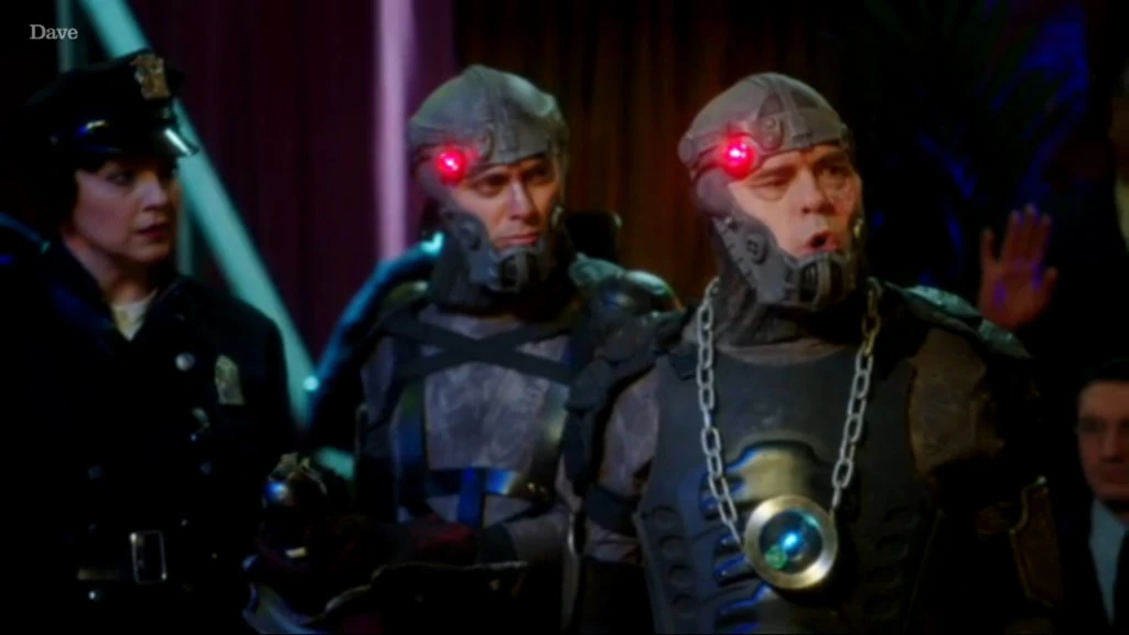 The bickering between 4 of 27 and 3 of 63 gave Einstein Bob enough time to complete the handheld EMP weapon which would deactivate the Expanoids. (Twentica, Series XI)