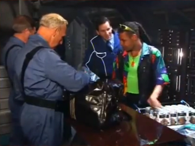 After Dave Lister broke up with Kristine Kochanski he took planetary leave on Mimas to get his head straight of the break up, on his way back he smuggled a cat through Red Dwarf customs. In one dimension, Lister was caught by Kochanski in the nearby locker room. ("Ouroboros", Series VII)