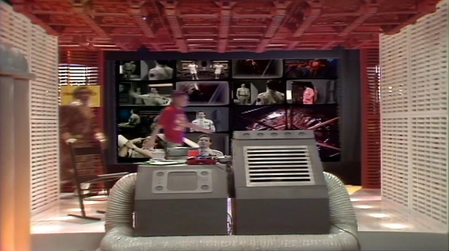 There was a bank of monitors along one wall; on these the thoughts, memories and dreams of the ship's current holographic crewmember were displayed visually. When Dave Lister and Cat entered this room, they saw important events of Rimmer's life (and death) playing out on the monitors, along with a dream of Rimmer's.