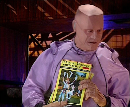 When Kryten gave Dave Lister a series of items with which to sabotage his love rival's quarters, they included several items belonging to Rimmer. One such item was a few copies of Morris Dancer Monthly, designed to make Tim look like a "total nerdo dweebmeister". Lister left the magazines in what he thought were Tim's quarters, but they turned out to be the quarters of Warden Ackerman. Lister and Rimmer managed to retrieve the magazines and other items before Ackerman returned. ("Krytie TV", Series VIII)