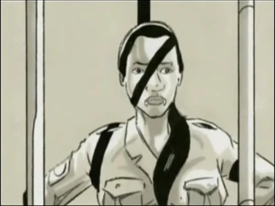 After the Brefewino leader buys Ora at the auction at dawn, Cat desperately chases after it, engaging it in a sword fight. Cat manages to confuse it and knock it down, before it activates its belt and reveals itself to be Zural. Cat still thinks there is something not right about him. Approaching Ora with a knife behind his back, Zural is speared as Cat throws his sword. With Cat's help Ora realises that it was her former commander who had betrayed her platoon, and Zural was merely tying up loose ends - her - on the Brefewino moon. Ora then changes her mind about Cat and kisses him.
