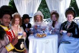 Upon arrival in the forested setting of Hertfordshire, England, Kochanski tried to interest her comrades in the subtle nuances of Austen's work. The Cat was dressed as an army officer of the time, while Lister was a country parson. The Cat complained about the tight trousers, which Lister explained were the cause of all the wars during the regency period. Kochanski, dressed in a typical young lady's dress and bonnet, introduced them to Mrs. Bennett and her five daughters: Jane, Elizabeth, Mary, Kitty and Lydia. They decided to go for a walk in the woods and stop at Mr. Bingley's gazebo for afternoon tea.