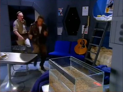 - This episode features a sequence set in a close recreation of the sleeping quarters from Series I, right down to the guitar and porthole. It's most likely be due to the fact that the timeline the ship is running on is set before the radiation leak in The End and those were Rimmer and Lister's quarters at the time.