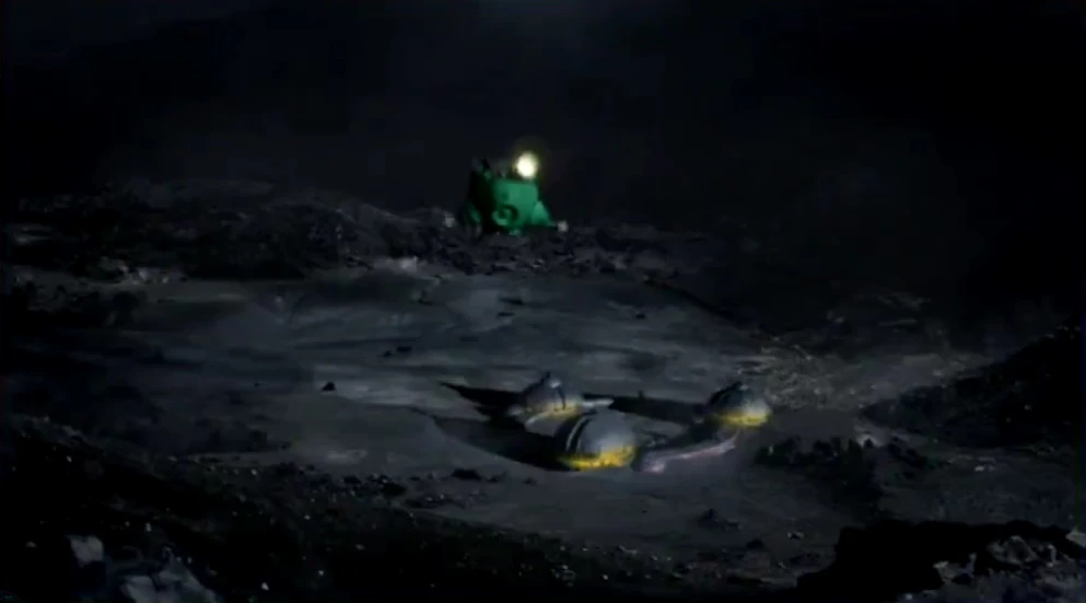 Starbug makes its descent to the Evil Rehabilitation Base