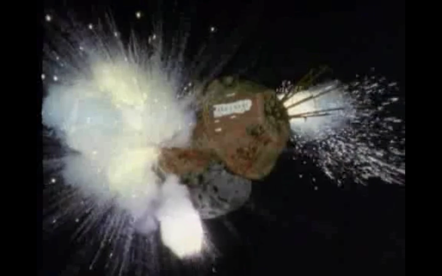 The crew decide to see what happens when they reverse the process, but when they do so they cause several explosions around the Science Room. What initially seems like a random accident becomes more serious as Engine Core starts to approach critical mass, threatening to destroy Red Dwarf. Lister, Rimmer, Kryten, and Cat barely have enough time to get to a safe distance in Starbug. Holly, who has been damaged from all the explosions, cannot understand the "open door" or "manual override" commands, forcing the crew to fly Starbug through the still-closed hangar bay doors, but luckily the tough shuttle is not damaged. As the others worry Lister assures them that they're only there as a safety measure, certain that Red Dwarf's many fail-safes will stop the ship from actually being destroyed... at which point, Red Dwarf explodes in a massive fireball.