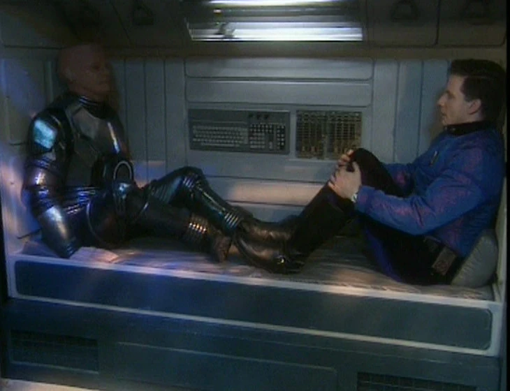 Kryten and Rimmer about to enter Deep Sleep